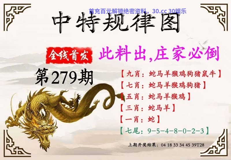 279期:九肖★鸡蛇牛猴猪虎马狗鼠★开:兔27