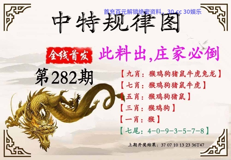 282期:九肖★羊鼠猪猴鸡狗龙虎★开:牛41中